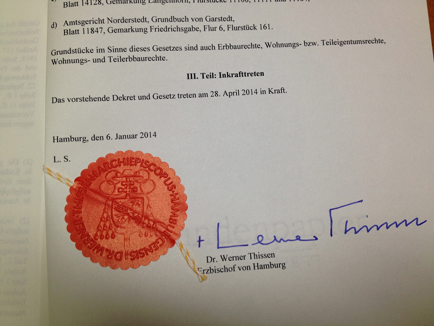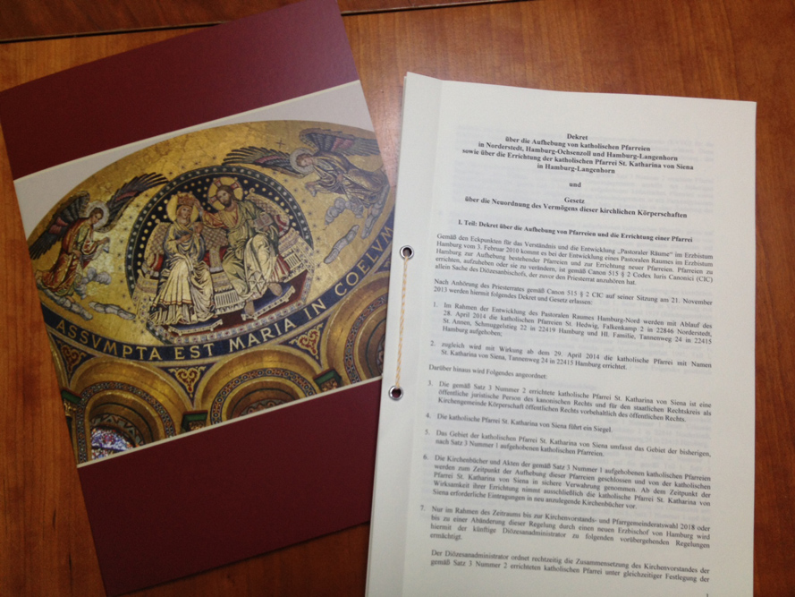 Hier finden sie Fotos zur Überreichung des Errichtungsdekrets durch Erzbischof Dr. Werner Thissen. Datum: 26.2.2014